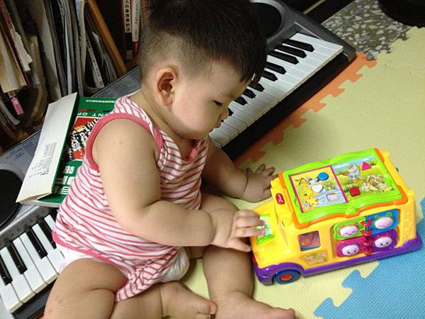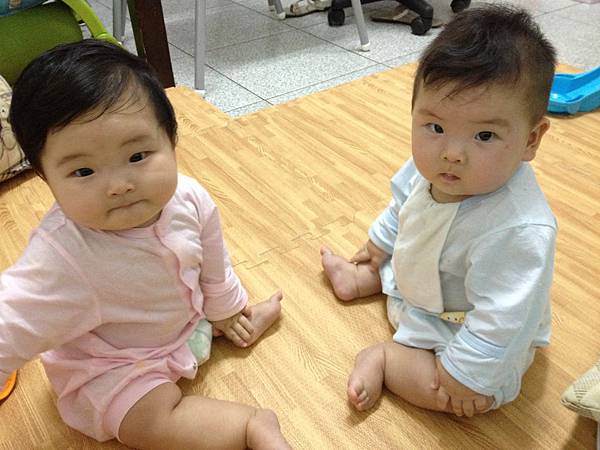 5. 8-9個月以後可以給寶寶玩雙手需使用的玩具,讓寶寶不須扶獨立坐著時間更拉長歐!爸爸媽媽可在寶寶肩膀輕輕推他,讓寶寶練習迅速維持平衡坐姿。
