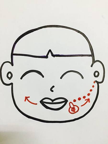 1. 由嘴角往耳垂下緣方向移動,點狀深壓方式來回3-5次。