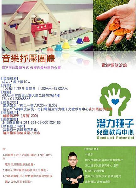 請以ATM轉帳完成後,再打電話至潛力種子兒童教育中心告知帳號後五碼