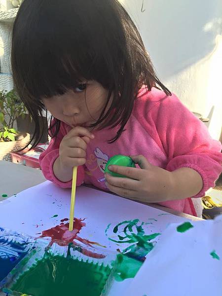 這樣可訓練孩子的口腔能力和氣流控制力,非常適合學習語言的2歲孩子歐!吹畫出來的成果,也相當的有藝術感說!