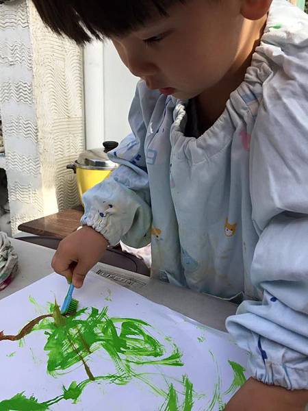 阿木覺得用牙刷畫比用水彩筆作畫,更來的適合3歲前孩子的小手。