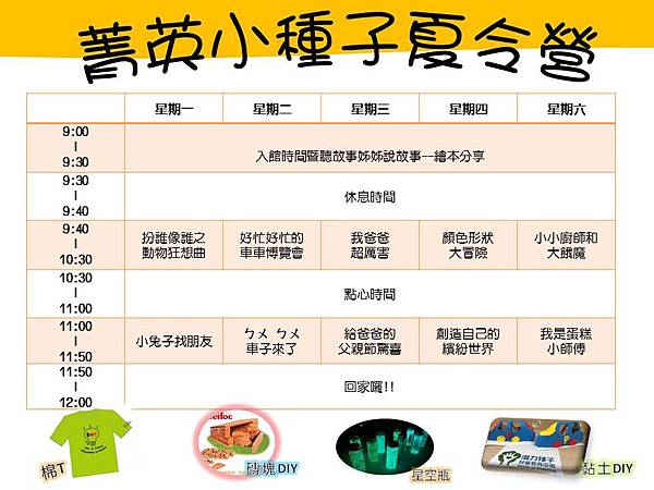 時間:104年7月27日-7月31日 (週一-週五) 早上 9:00-12:00