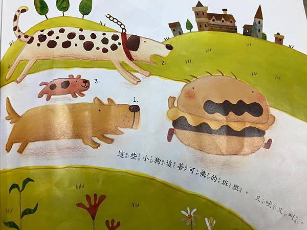 ◎故事內容逗趣、畫風更是生動,像是班班變成漢堡,被不同動物追趕的內容,讓孩子非常投入更是緊張,深受孩子喜愛。