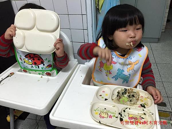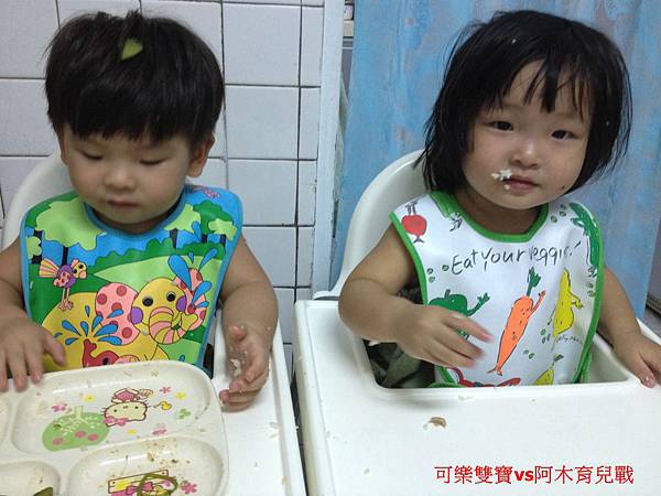 從我家雙寶7個月時就開始執行坐餐椅,若孩子不想吃,下餐椅就不能吃,想吃請再上餐椅。但是上了餐椅,就是孩子的時間,能盡情練習自己亂七八糟的吃飯。雖然雙寶一起吃飯的畫面,真的很駭人(哈哈!),但孩子真的會喜歡吃飯時光。