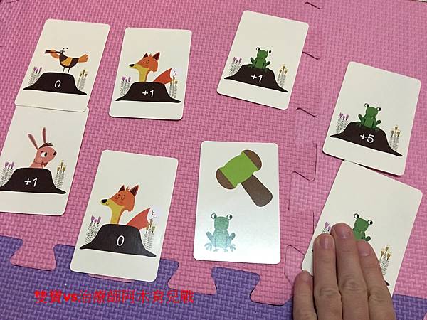 3.一旦翻開出現槌子打動物的牌卡,就要立即拍打桌面上相對應的動物牌